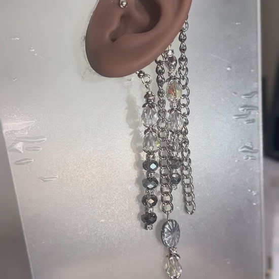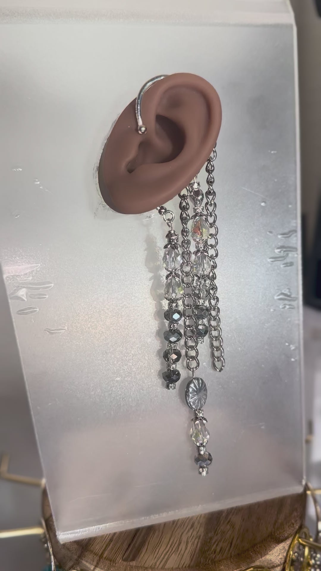 For the goddess who glows in silence and captivates with light. This ear cuff drapes in icy crystal shimmer and soft silver chain, reflecting every flicker of radiance like morning dew under moonlight. Each movement catches a glint of purity and strength — an ode to calm power and divine clarity. No piercings required — slip it on and let your aura shine.