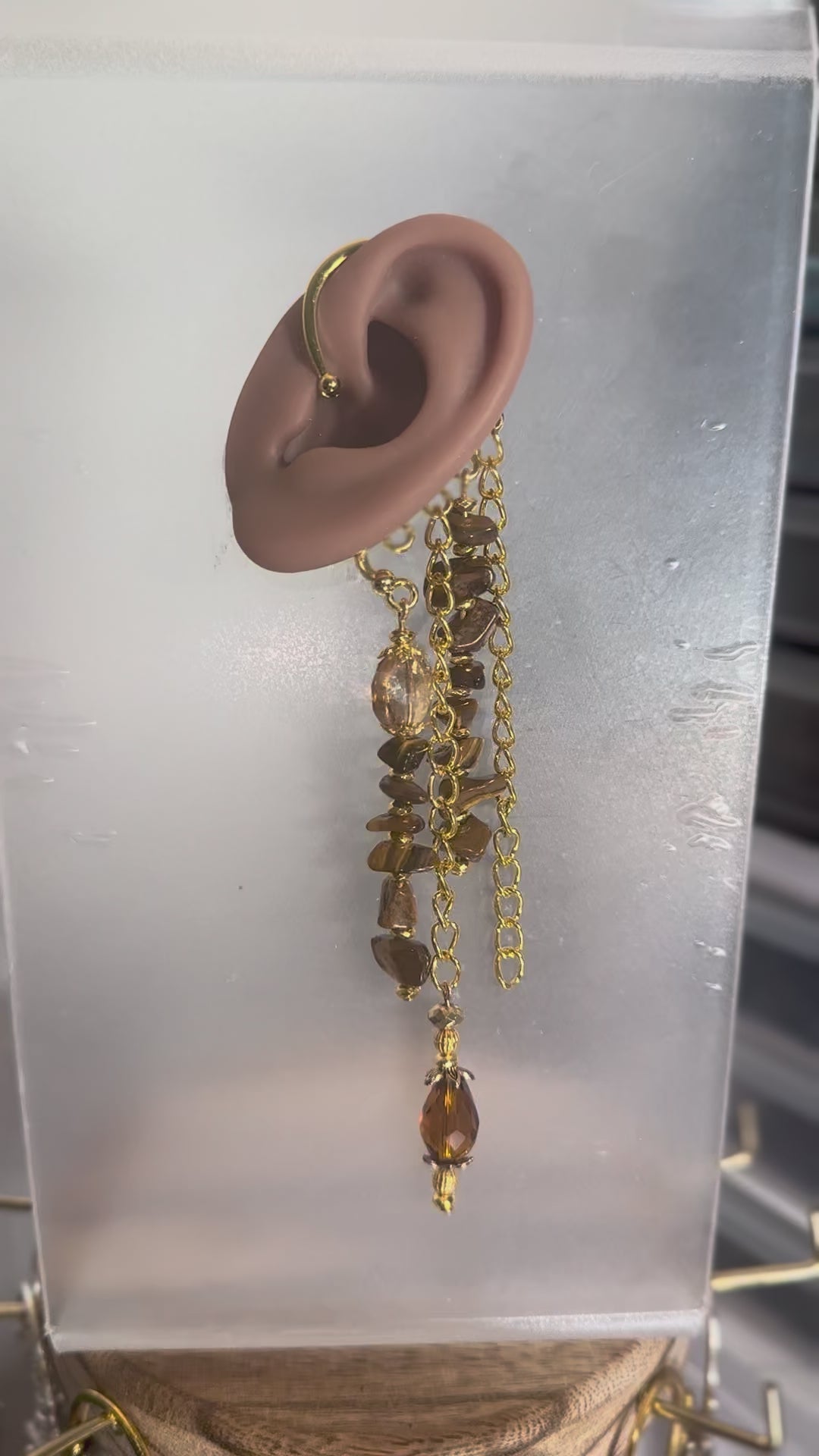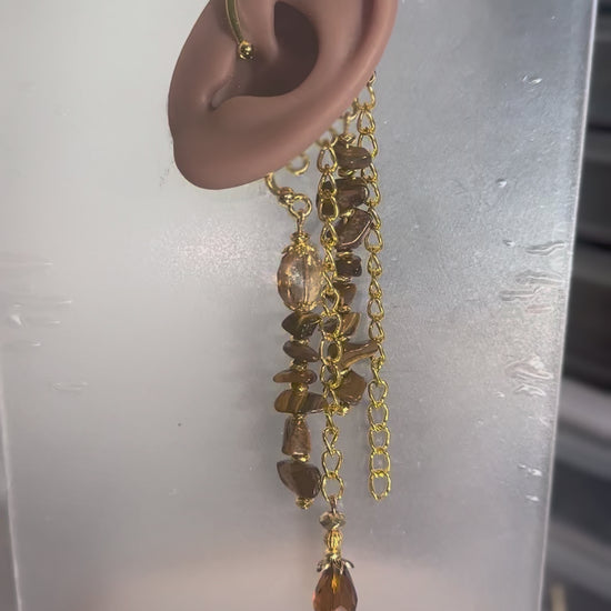 For the goddess who walks with fire in her spirit and strength in her soul. This ear cuff burns with the golden warmth of genuine Tiger’s Eye stones, cascading in glimmering gold chains and fierce energy. Each reflection ignites confidence, grounding, and power , a radiant reminder of your divine flame. No piercings required , slip it on and embody your inner fire.