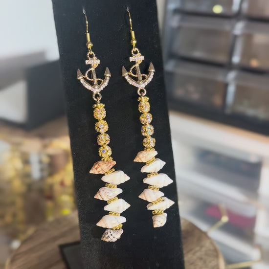 - Materials: Natural shells, crystal beads, gold-plated anchor charms, gold chain